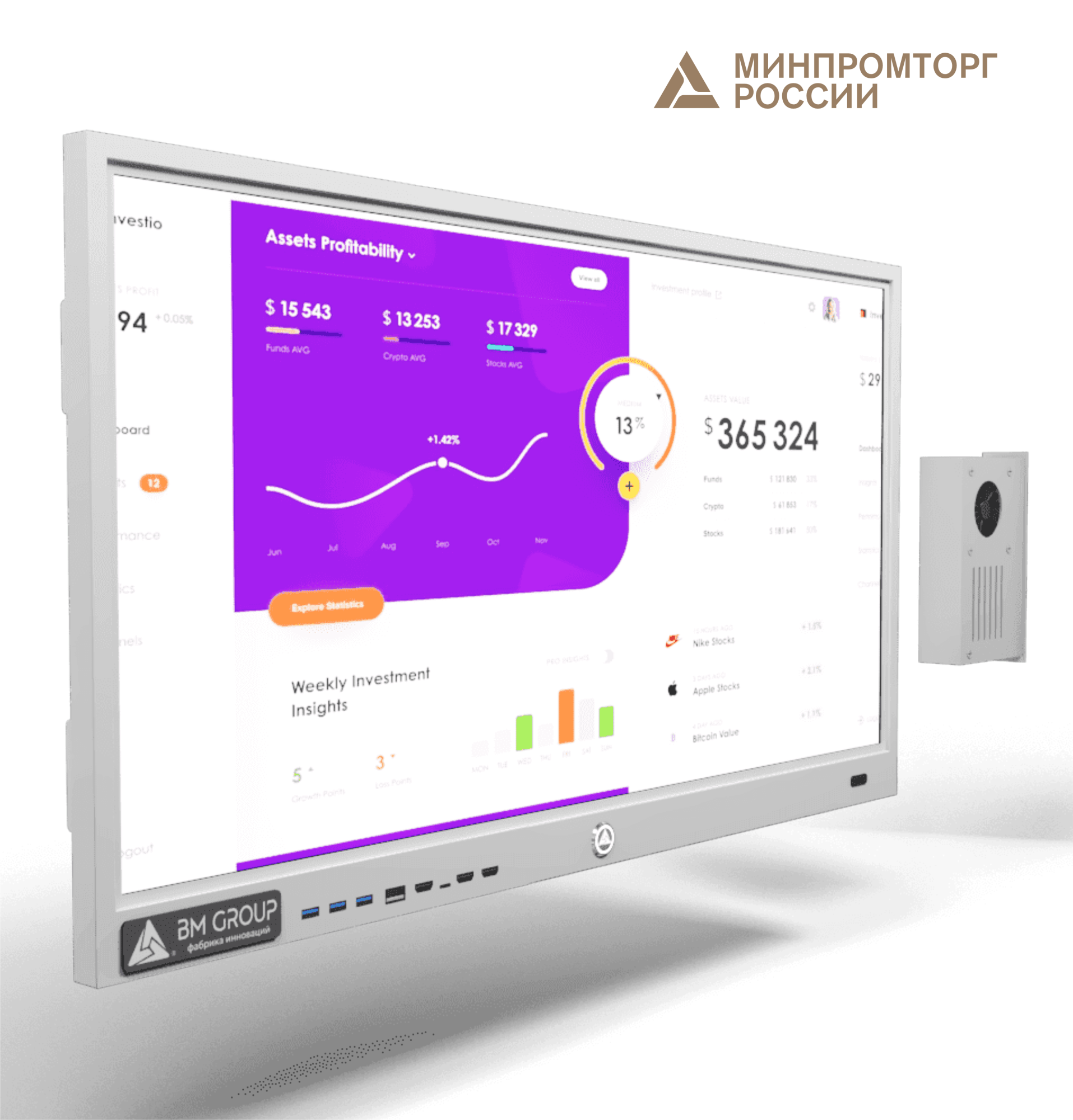 Оборудование соответствует постановлению Правительства РФ от 17 июля 2015 г. № 719 «О подтверждении производства промышленной продукции на территории Российской Федерации» и постановлению Правительства Российской Федерации от 10.07.2019 № 878 "О мерах стимулирования производства радиоэлектронной продукции на территории Российской Федерации при осуществлении закупок товаров, работ, услуг для обеспечения государственных и муниципальных нужд". Включено в Реестр промышленной продукции Минпромторга России. Многофункциональная панель в простом и современном дизайне не занимает много места, крепится на стену или на мобильную стойку на колесиках с фиксаторами. Это прекрасное решение для музеев, выставочных центров, образовательных учреждений (школ, колледжей, вузов и т.д.). Наша оболочка Aura работает с презентациями и всеми офисными приложениями. Дополнительные опции: - Двухцветная окраска; - Любой цвет не по каталогу; - Цвет "металлик"; - Линейка цветов Crazy Colo; - Оклейка брендированной плёнкой; - Светящийся логотип; - Объемный логотип; - Печать логотипа на ПВХ; - Боковая подсветка (несколько цветов); - Парящая подсветка; - Светящиеся знаки на корпусе. Стоимость по запросу.