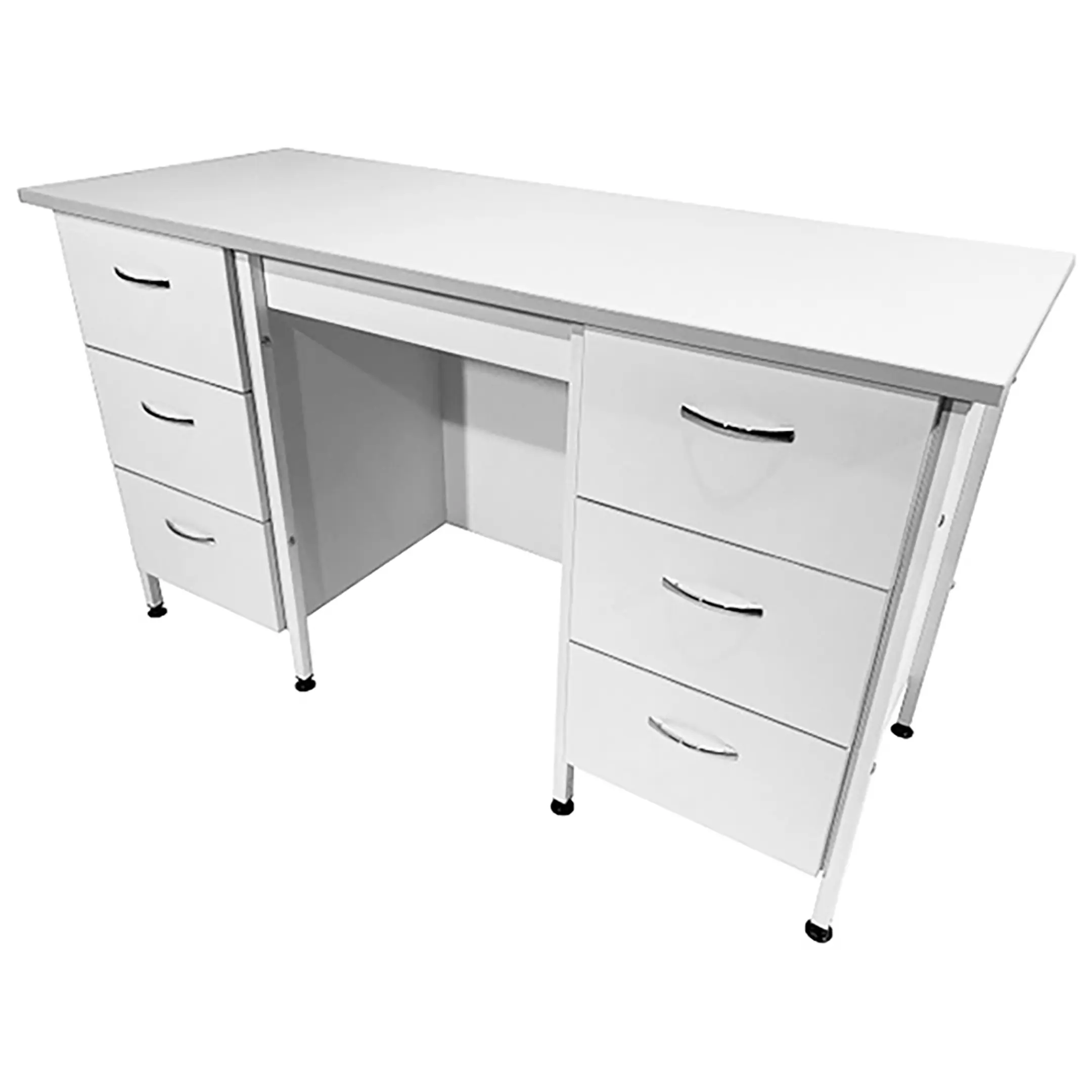 Стол лабораторный СЛ 12.015 (белый) — это идеальное решение для создания удобного и функционального рабочего места сотрудников в лабораториях и медицинских учреждениях. Модель оснащена тумбами с тремя выдвижными ящиками и защитным экраном из ЛДСП. Каркас выполнен из стального профиля, столешница из ЛДСП толщиной 22 мм.