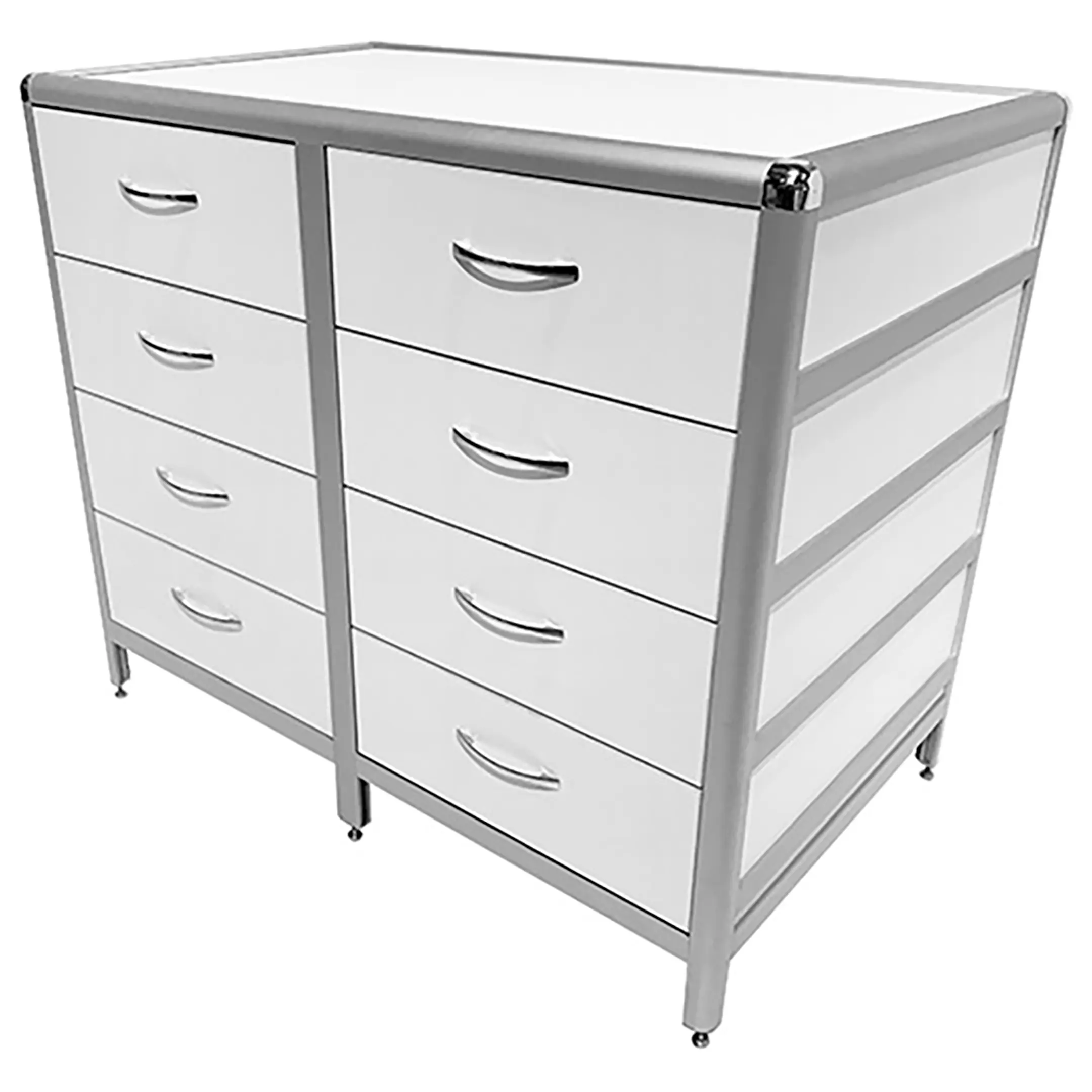 Стол-тумба лабораторная MED 12.014al (белый) — это функциональное решение для хранения лабораторного инвентаря, приборов и материалов в лабораториях и медицинских учреждениях. Модель оснащена двумя вертикальными рядами выдвижных ящиков (всего 8 штук) размером 434х70х406 мм. Каркас выполнен из алюминиевого профиля, столешница из ЛДСП толщиной 16 мм.