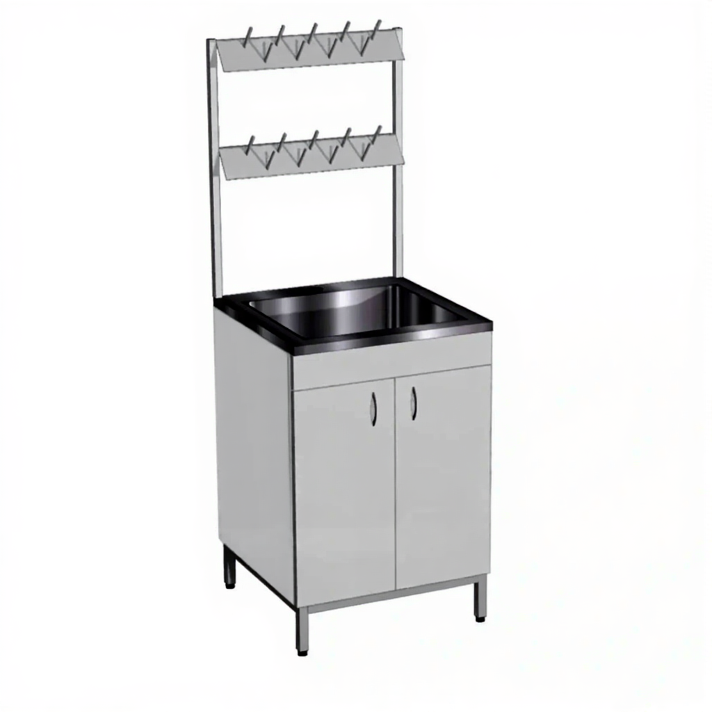 Стол-мойка СТм-101/1 «Стандарт» (корпус ЛДСП серый, каркас серый) — это необходимая составляющая для оснащения рабочей зоны, обеспечивающая удобство и безопасность труда специалистов-исследователей в кабинетах лабораторий. Модель предназначена для мытья и сушки лабораторной посуды. Оснащена одночашевой накладной мойкой из нержавеющей стали, двумя дверками в тумбе и сушкой для посуды. Каркас выполнен из стального профиля, корпус из ЛДСтП 16 мм.