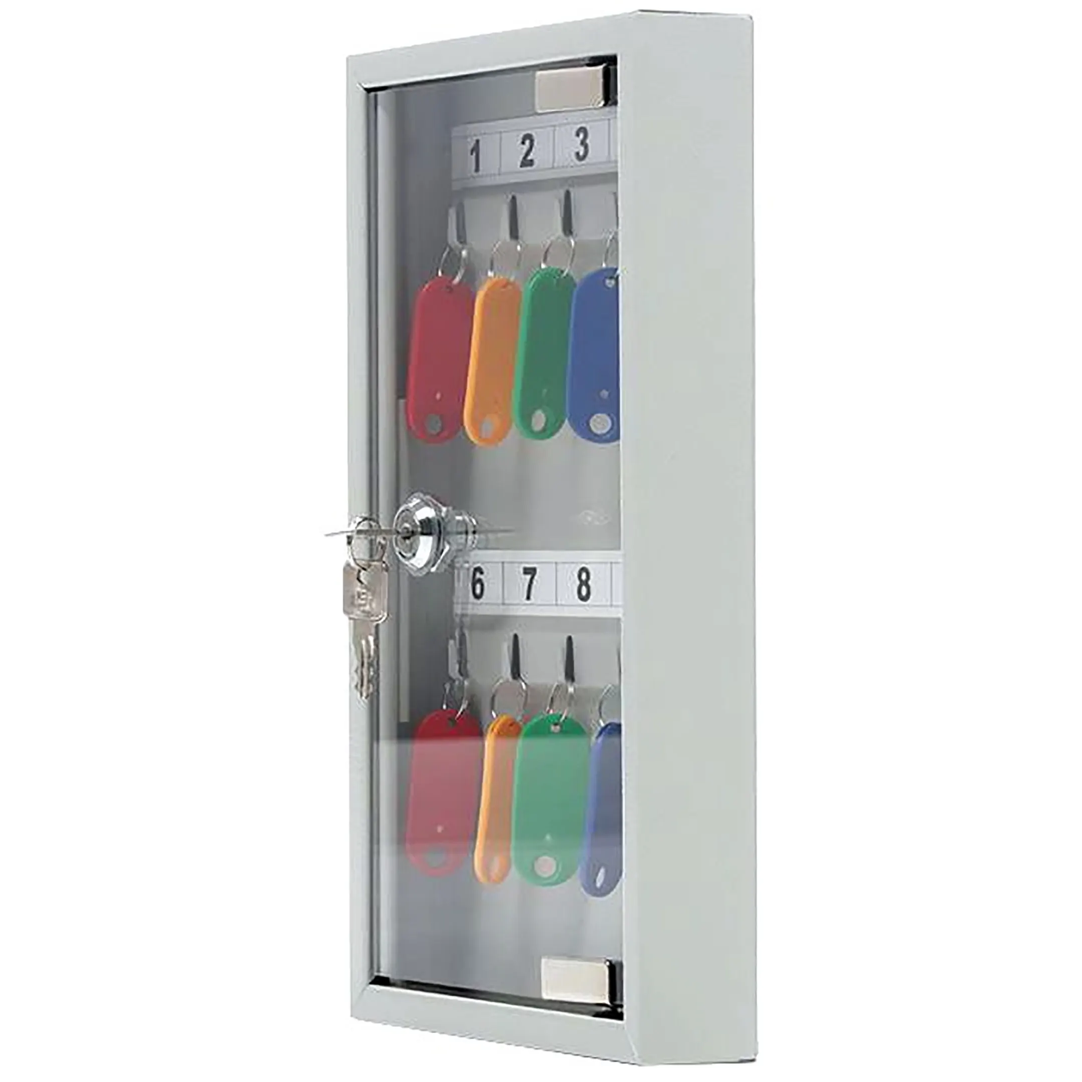 - Максимальная наглядность и мгновенный доступ к информации — прозрачная дверца позволяет с первого взгляда увидеть наличие и расположение всех ключей. Это исключает необходимость открывать ключницу для проверки, обеспечивает сверхбыстрый поиск нужного ключа и идеально подходит для ответственных точек, где важна каждая секунда.
