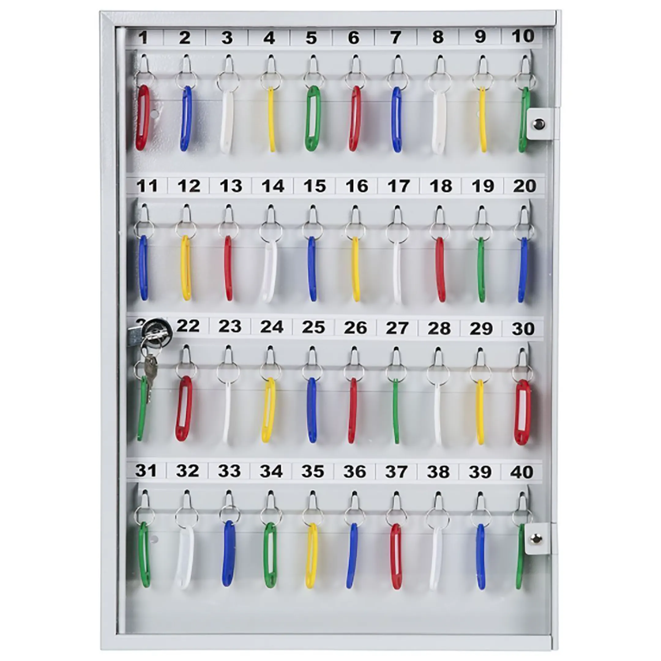 - Наглядность и мгновенный визуальный контроль — прозрачная дверца позволяет с первого взгляда оценить наличие и расположение всех ключей без необходимости открывания. Это обеспечивает оперативную проверку, быстрый поиск нужного ключа и предотвращает ошибки, связанные с его отсутствием.