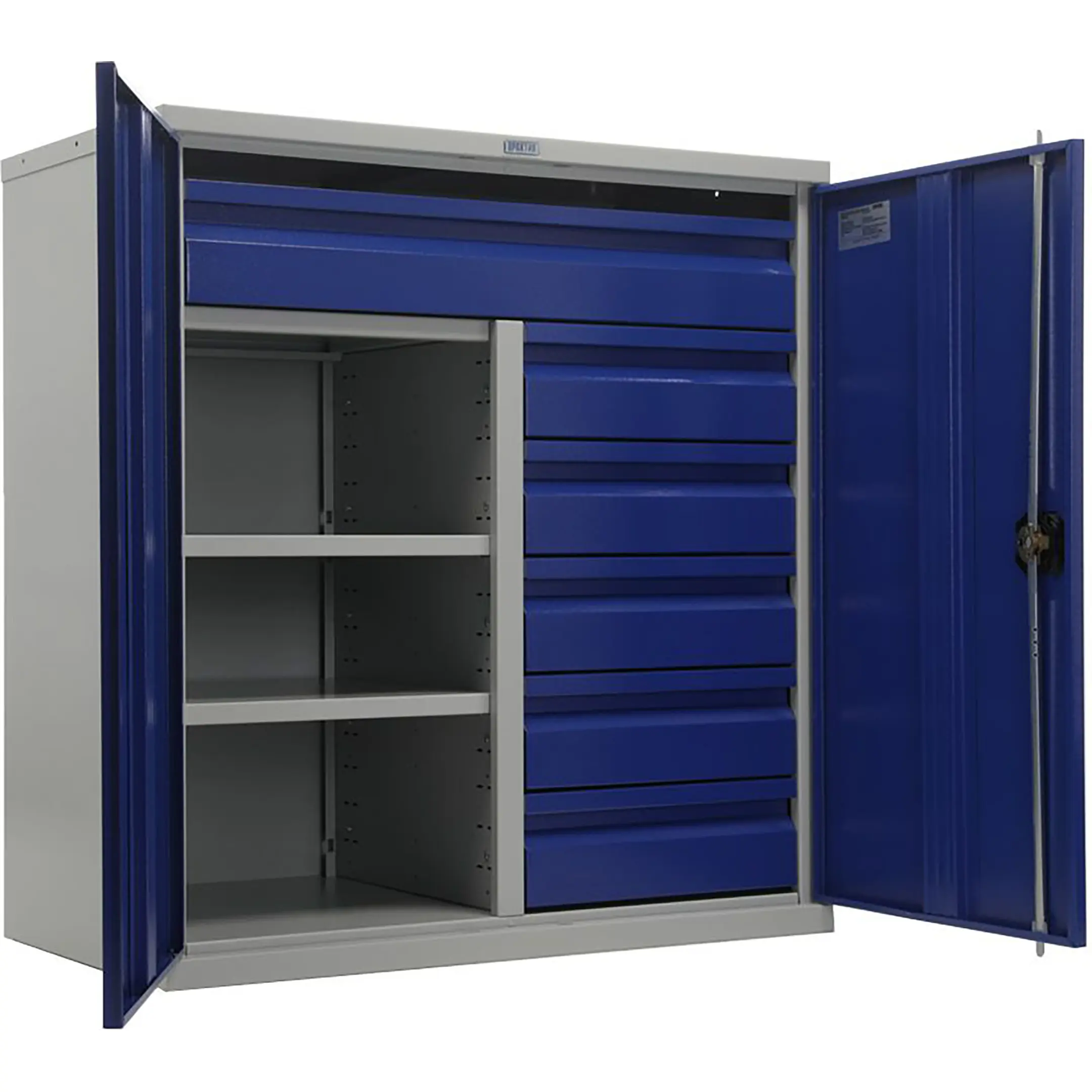 - Надежная защита инструментального парка — цельнометаллический корпус с запирающимися на общий замок дверями обеспечивает высокий уровень безопасности. Это защищает содержимое от краж, несанкционированного доступа, а также от пыли, грязи, стружки и влаги, характерных для производственной среды.