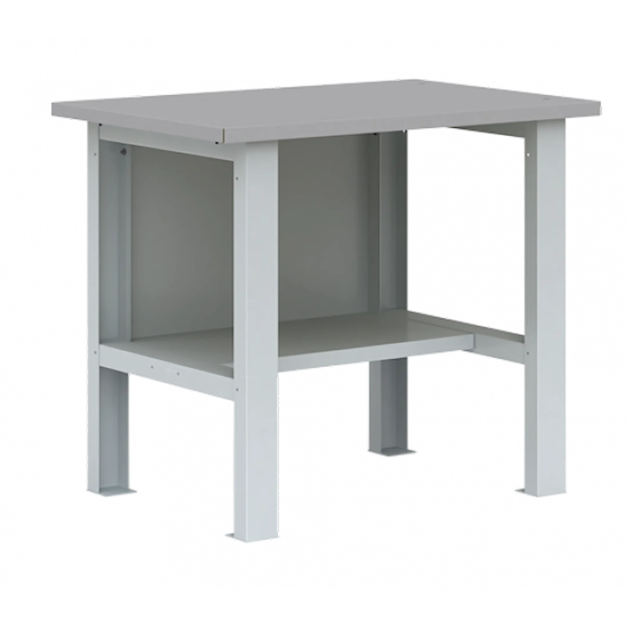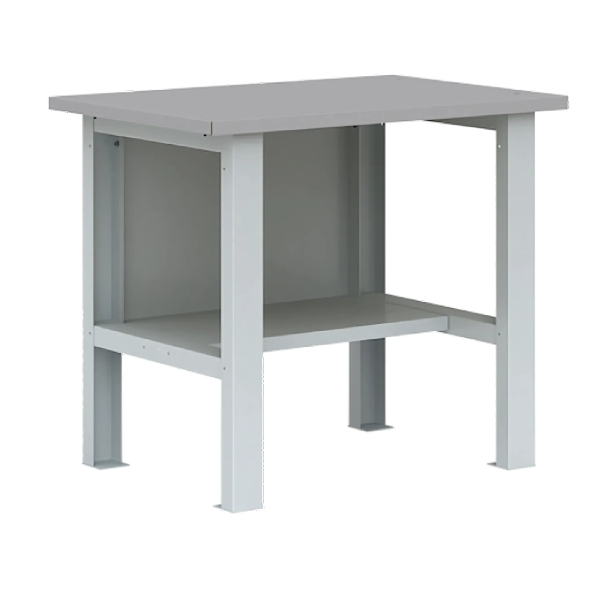 - Функциональная комплектация — металлическая задняя стенка, две металлические верстачные опоры и полка с нагрузкой до 40 кг.