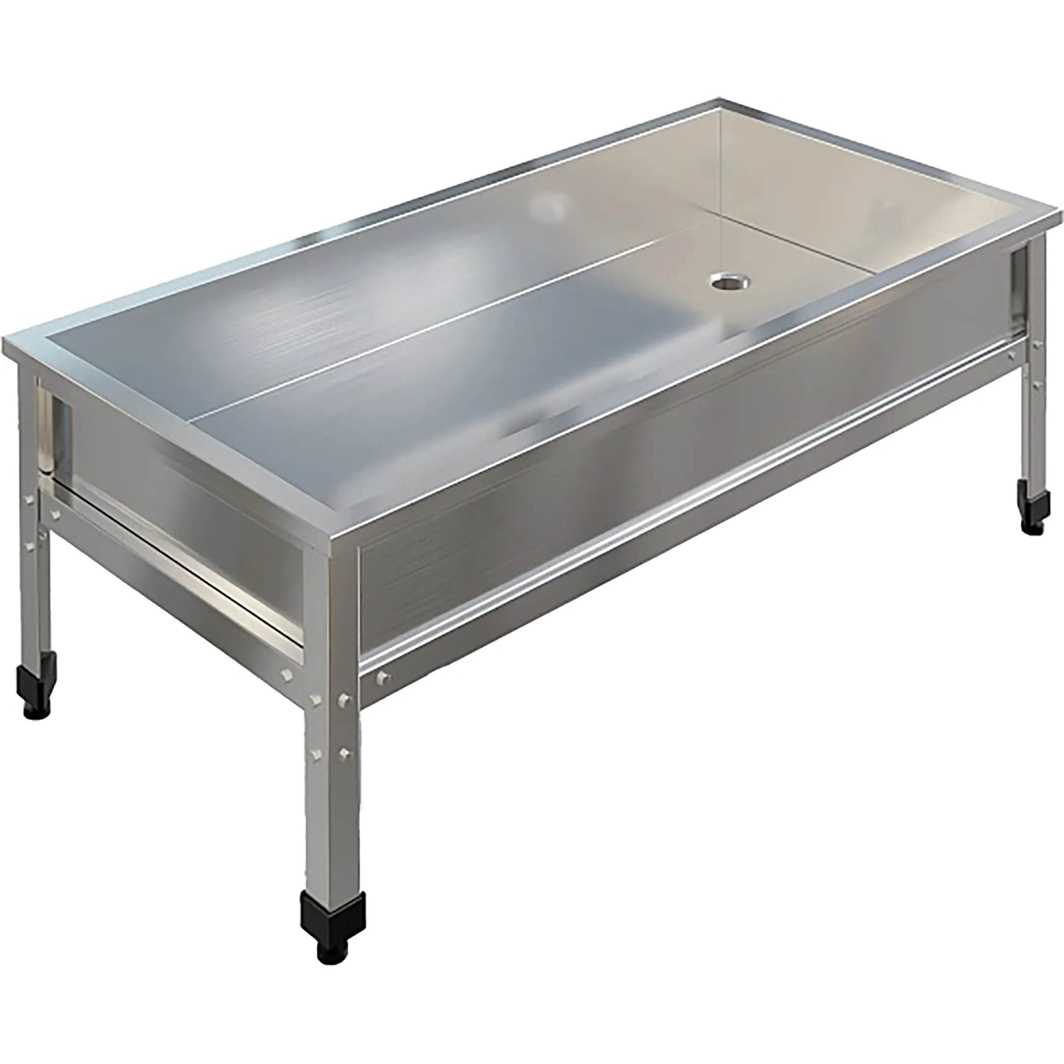 Ванна моечная низкая ВМСН-12/8/4-ЭЦ разработана для применения в производственных и моечных отделениях предприятий общепита и торговли различного формата, пищевых производств и пищеблоков для мытья и дезинфекции уборочного инвентаря, посуды и кухонных принадлежностей.