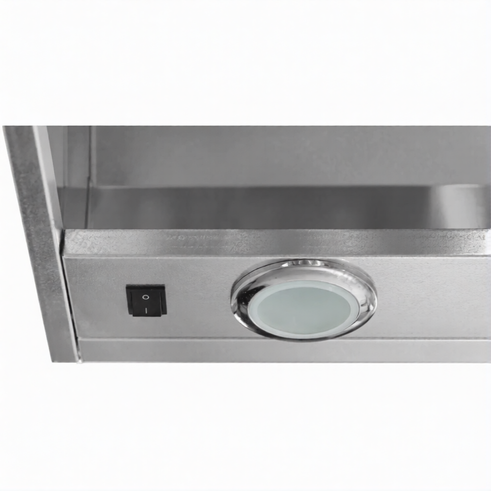 Зонт вытяжной универсальный ЗВУб 400х600х1000 «Base» (к-т светильников) используется на профессиональной кухне для повышения производительности общей системы вентиляции, удаления водяного пара из воздуха и более эффективного жироулавливания.