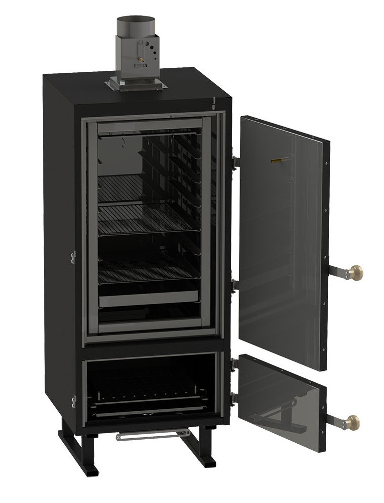 Угольная коптильня Vesta "Model K" предназначена для приготовления мяса, рыбы, сыра и овощей с использованием дров и древесного угля. Выполнена по схеме "камера в камере", которая обеспечивают разделение рабочего объема и топки. Продукты сгорания от углей не смешиваются с дымом для копчения от щепочек ценных пород древесины.