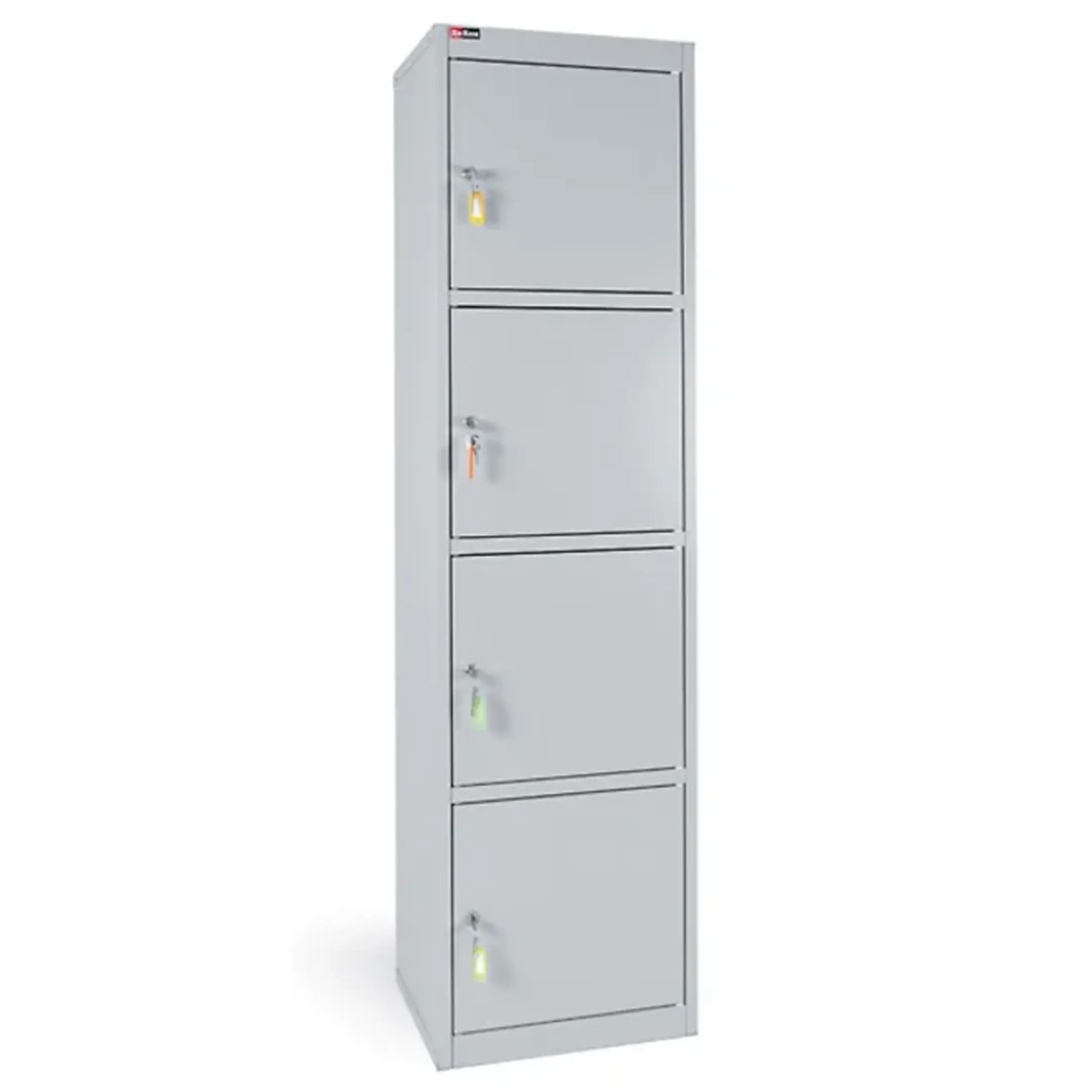- Прочная и надежная конструкция — шкаф изготовлен из качественной листовой стали с антикоррозийным порошковым покрытием, что обеспечивает долговечность, устойчивость к механическим воздействиям и защиту содержимого. Распашная дверца запирается на надежный встроенный замок с ключом.