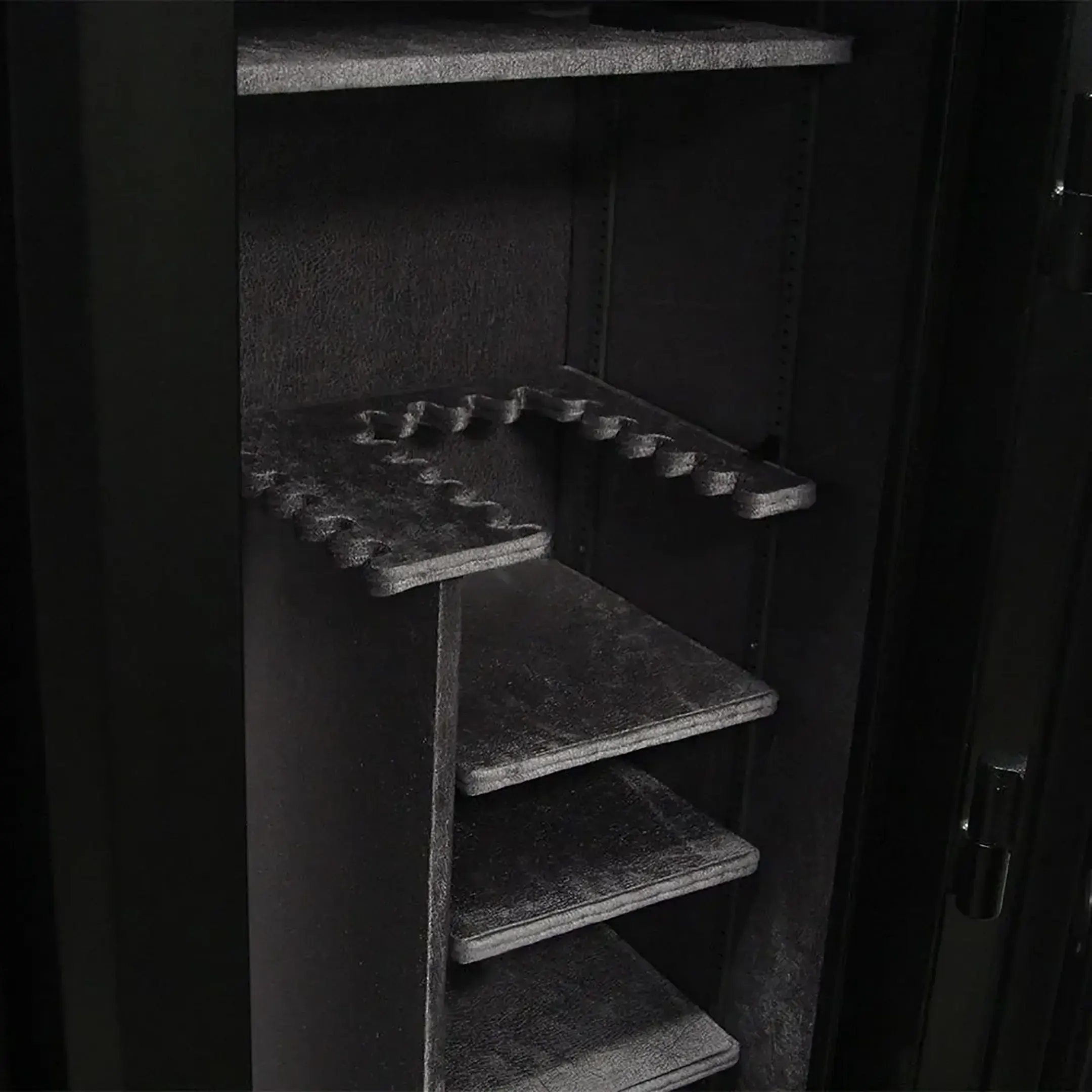 • Чтобы оружие хранилось в безопасности, требуется приобрести надежный сейф. Большой популярностью пользуется модель American Security L26-E знаменитого производителя из США. Хранилище обладает правильно продуманной конструкцией, благодаря чему в нем одновременно можно разместить до 24 стволов. Дополнительно оно оснащается 4 удобными полками для хранения всевозможных оружейных принадлежностей. Внутренняя отделка выполнена из качественного и мягкого сукна, которое препятствует образованию на стволах мелких потертостей, царапин и других механических повреждений. Производитель для создания оружейного сейфа применил прочную, надежную и устойчивую к негативным внешним воздействиям сталь. Весит конструкция 389 кг. Крепится она непосредственно к полу. Приятно удивляют и грамотно продуманные габариты хранилища. Его ширина составляет 762 мм, высота - 1500 мм, глубина - 559 мм. Таких показателей вполне хватает для бережного хранения оружия. Доступ к содержимому закрыт благодаря электронному кодовому замку. Чтобы открыть дверцу, владельцу сейфа требуется правильно ввести секретный код. Электронный замок удобней механического, но это не значит, что злоумышленнику удастся его вскрыть. Дело в том, что после неправильного ввода комбинаций замок автоматически блокируется. Он обеспечивает надежную защиту от взлома.