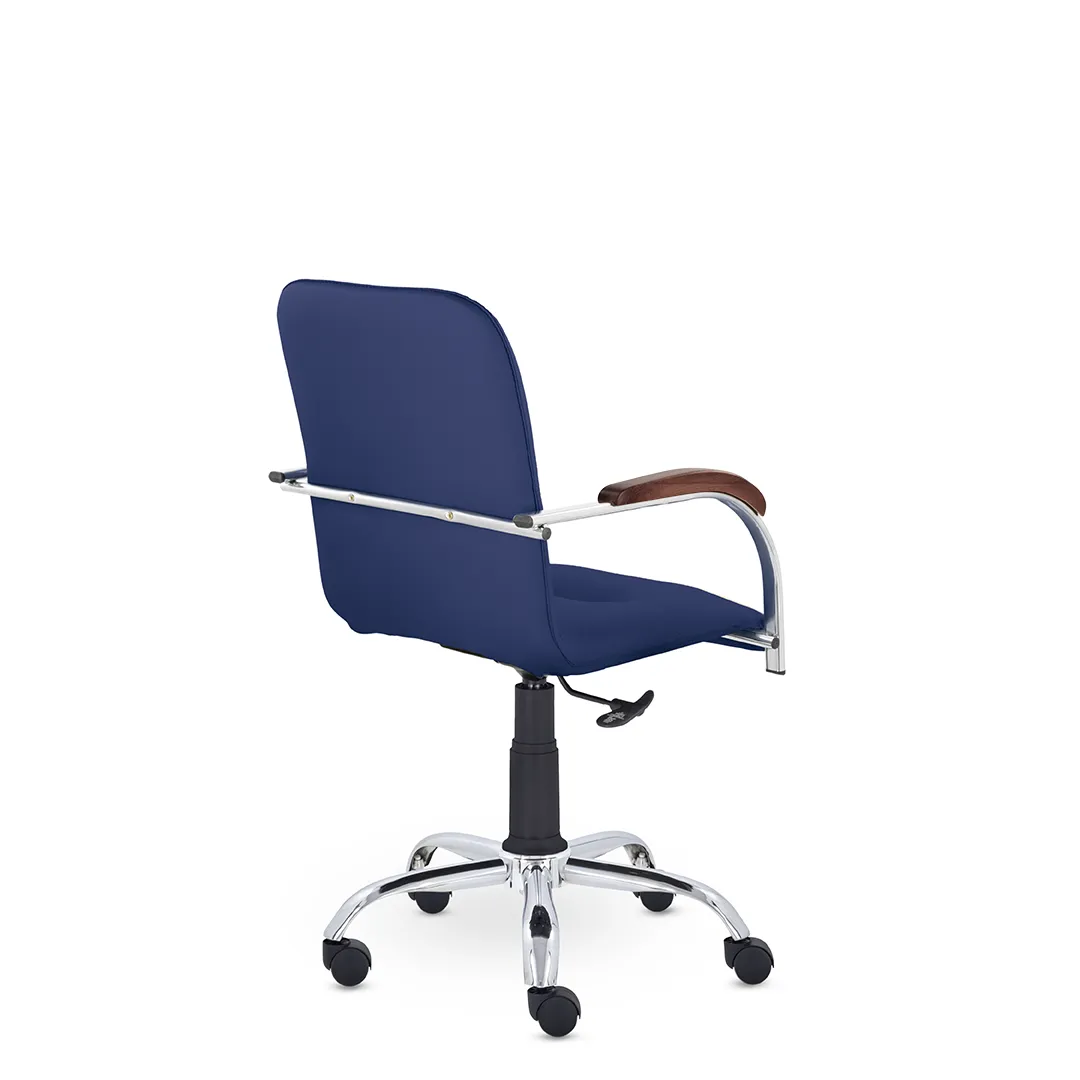 - Эргономичная посадка — спинка с поддержкой поясницы и удобное сиденье обеспечивают комфорт при длительной работе или совещаниях.