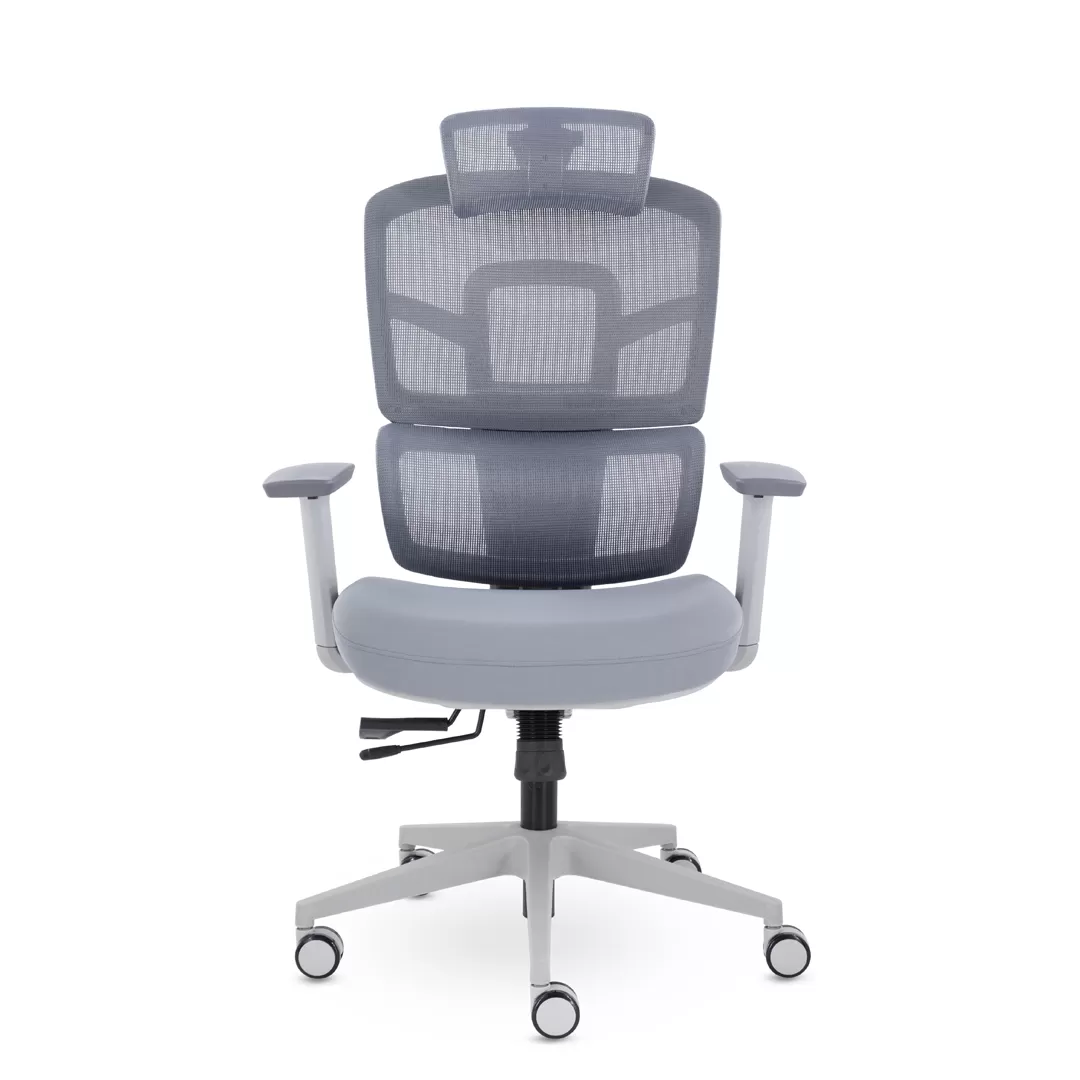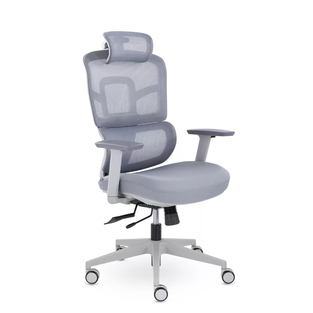 - Современный дизайн — серый каркас и лаконичные линии создают аккуратный, стильный и профессиональный внешний вид кресла.