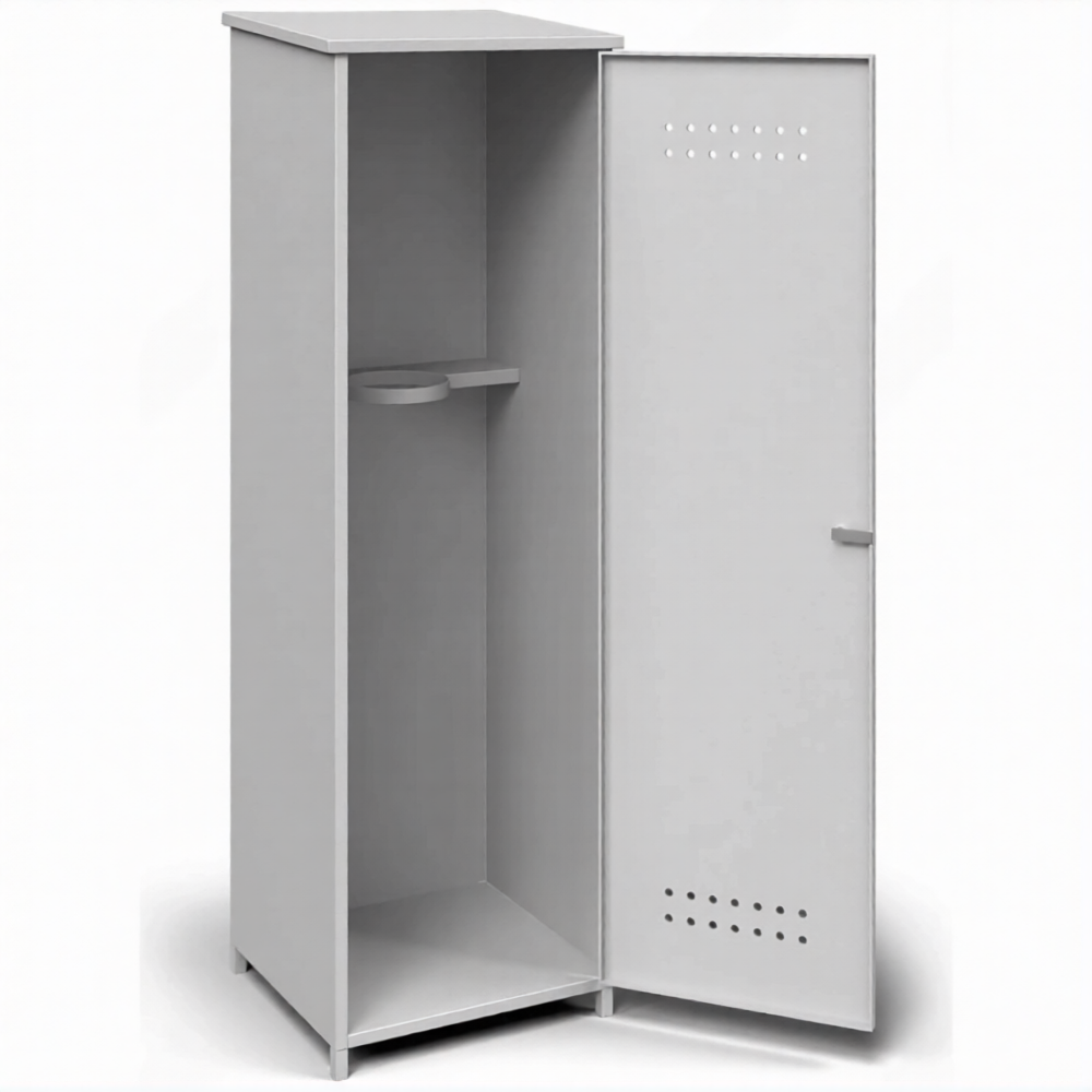 - Надежная антивандальная защита и сохранность имущества — усиленная сварная конструкция с массивными петлями, противосъемными штырями и возможностью установки врезных замков превращает шкаф в высокозащищенное хранилище. Это эффективно защищает дорогостоящий баллон и газ от краж, несанкционированного доступа и вандализма, особенно при уличной установке или размещении в проходных местах.