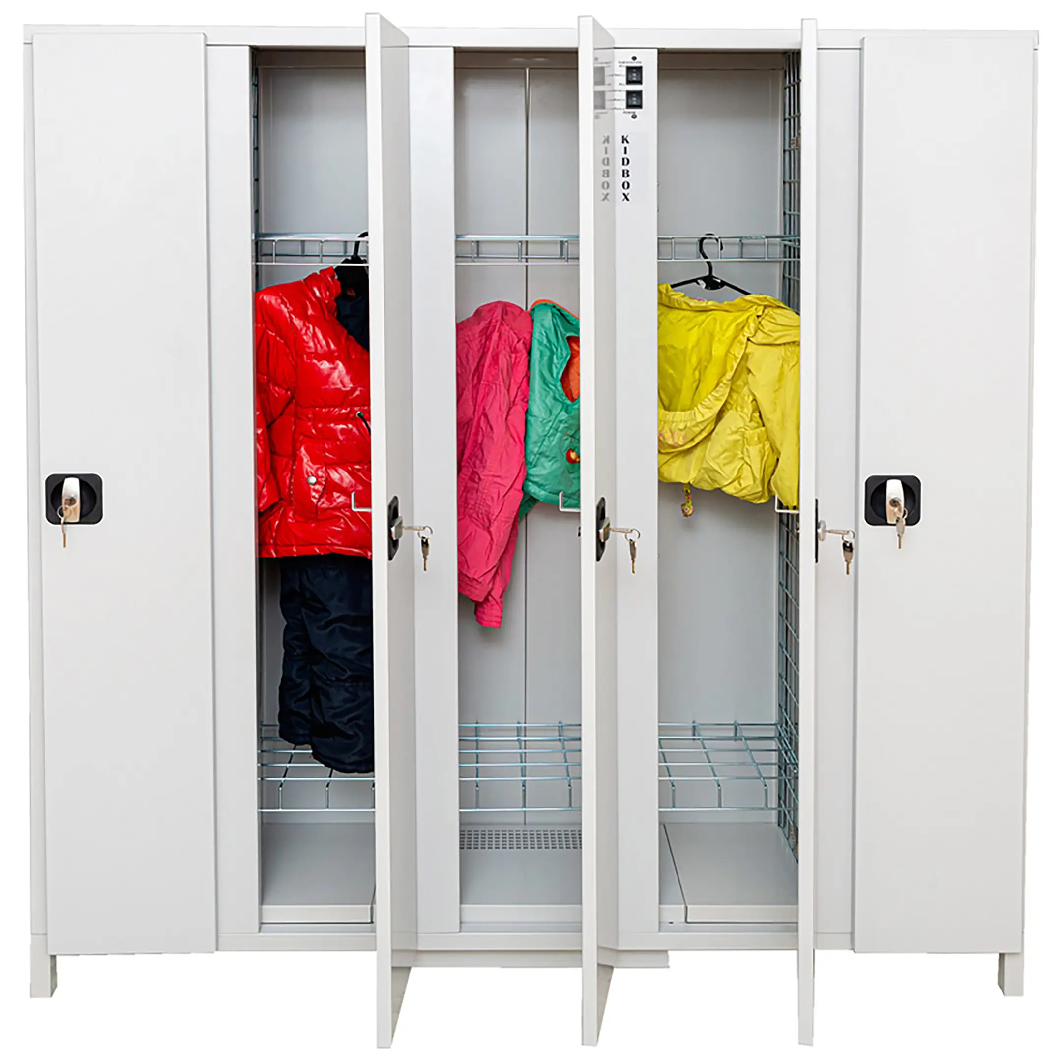 Шкаф сушильный KIDBOX 5 — это компактное и безопасное оборудование, специально разработанное для бережной сушки детской одежды, обуви, спортивной формы, головных уборов и мягких игрушек в детских садах, яслях, школах, развивающих центрах и других учреждениях для детей. Модель обеспечивает деликатную, равномерную сушку при щадящей температуре, способствуя поддержанию гигиены и комфорта.