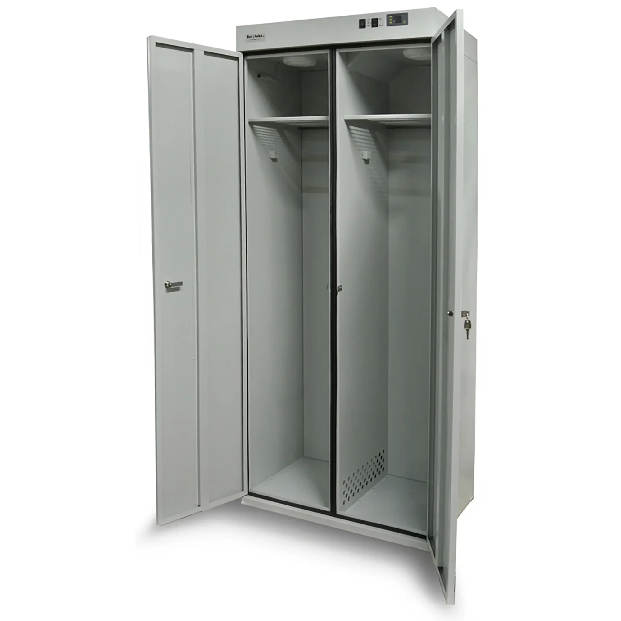 - Компактность и универсальность — шкаф предназначен для одновременной сушки как одежды (спецодежды, спортивной формы), так и обуви. Его оптимальные габариты позволяют разместить оборудование в помещениях с ограниченным пространством, таких как небольшие раздевалки, кабинеты персонала или учебные классы, без потери функциональности.