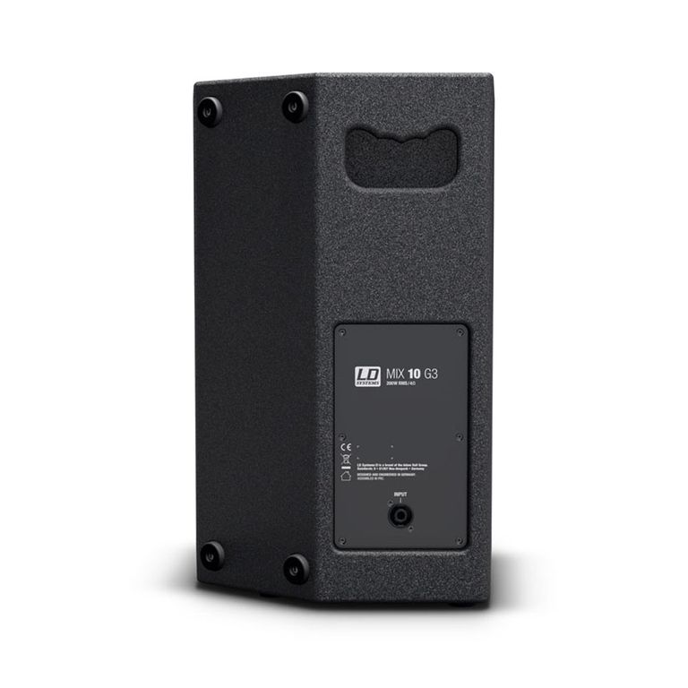 Корпус изготовлен из прочной фанеры с углом 50° для использования в качестве сценического монитора и «стаканом» под стойку с углом 0° или 5°. В конфигурации master-and-slave с активным модулем MIX 10 A G3 обеспечивает высокую производительность и универсальность применения в легком корпусе.
